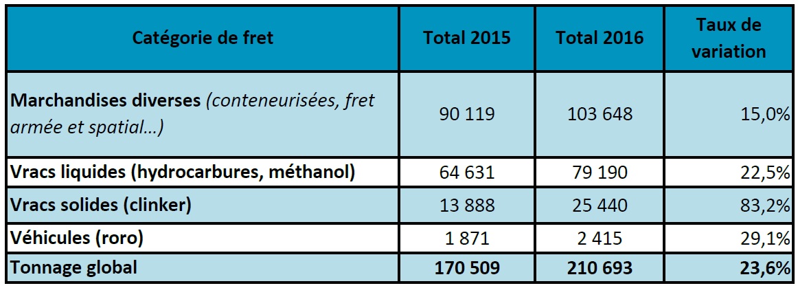 Malgré le constat d’un forte hausse des vracs solides (+ 83,2%), la tendance sur l’année 2016 devrait rester pratiquement identique à celle de 2015 (aux environs de 85 000 tonnes – clinker + gypse -) : une légère hausse avec Ariane 6 en 2016, mais un secteur BTP qui tarde à redémarrer.