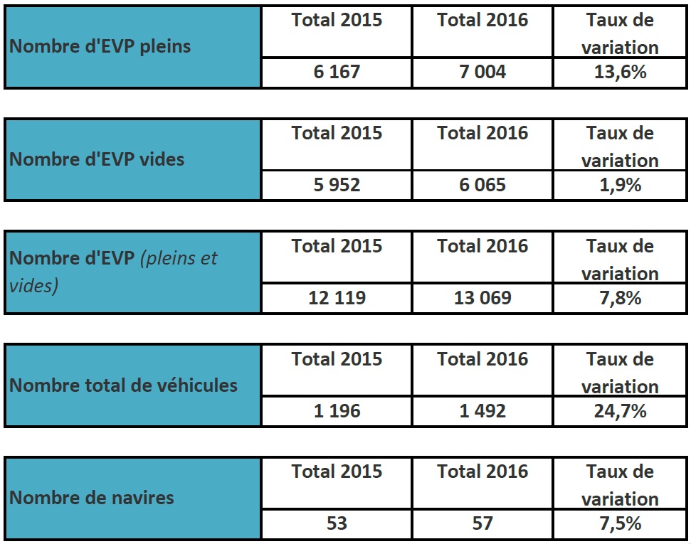 Au premier trimestre 2016, le tonnage global import/export de marchandises transitant par le port de Dégrad-des-cannes/Pariacabo s’élève à 209 433 tonnes brutes , soit une augmentation de 23,6% par rapport à la même période de l’année 2015.