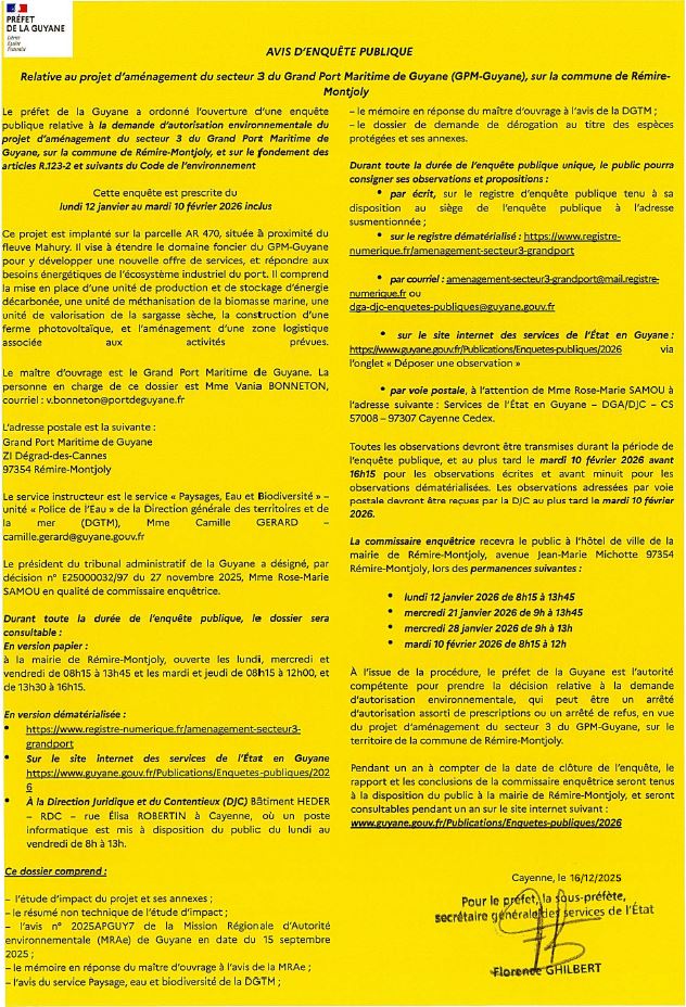 Projet d’aménagement du secteur 3 du Grand Port Maritime de Guyane (GPM-Guyane), sur la commune de Rémire-Montjoly.