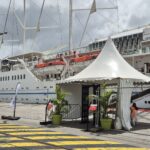 L’agent maritime Somarig, la capitainerie et les équipes de l’exploitation, du mase, de la communication du GPM étaient mobilisés pour accueillir les croisiéristes dans les meilleures conditions. Le GPM-Guyane a mis en place les mesures réglementaires de sûreté en créant une ZAR (zone d’accès réglementé) délimitée par un barriérage et contrôlée par des agents chargés des visites de sûreté (ACVS). Ces équipements mobiles pallient l’absence d’un quai et d’une zone dédiés à la croisière.
