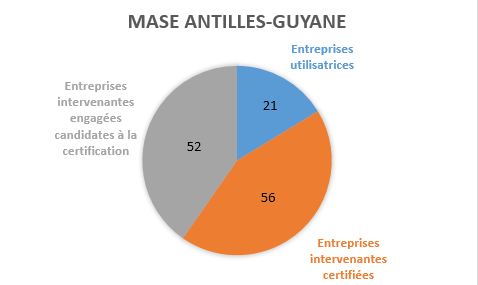 Plus d’un tiers des membres de l’association MASE Antilles-Guyane sont des adhérents guyanais. Cette dernière comptabilise aujourd’hui 129 entreprises regroupées comme suit :